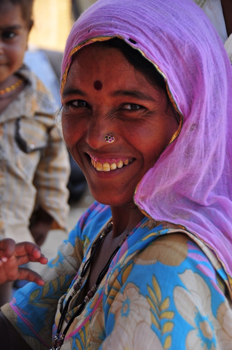 Up at dawn to the smoky haze hanging over Delhi…it’s to keep the bugs away. Uh huh. They do it on purpose. And on to our first real stop in India. Jaisalmer. The golden city. But getting there has been so spectacular! Since this morning we have been on the road through villages and towns in western Rajasthan and we have been immersed in the biggest smiles from the friendliest people we have ever met. Incredible India? You bet. Each one, young, old, men, women, welcomed us to their part of the pavement or storefront, or village corner with open arms and wide hearts. You can see by the photos that the villagers are full of life and laughter. They are also eager to have their picture taken. What a surprise! After I take their picture, they want to see it in the digital screen. They more picture I take, the more come over for their portrait. Marci has also drawn quite a crowd with her blond hair. It’s clear that they are as curious about us as we are about them.