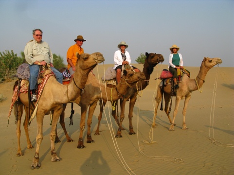 After getting comfortable atop our massively tall rides, we spent a beautiful morning through desert scrub, cascading sand dunes and lovely small villages home to herders and their families. It was a great experience that we all enjoyed and made the long rise to Jaisalmer very much worth it.