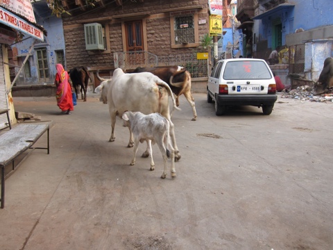 And again there is balance. The cows eat the garbage on the streets…newspapers, boxes, all of it. In exchange, they leave piles of, well, you know, which are picked up by the water trough guy and later made into building materials for village huts. The cows move slowly, at peace with their surrounding which is actually chaos swirling around them. You can’t help but giggle uncontrollably as they strut, chewing their cud, and daring the traffic to just try and move them out of the way. Oh, to be a cow in India.