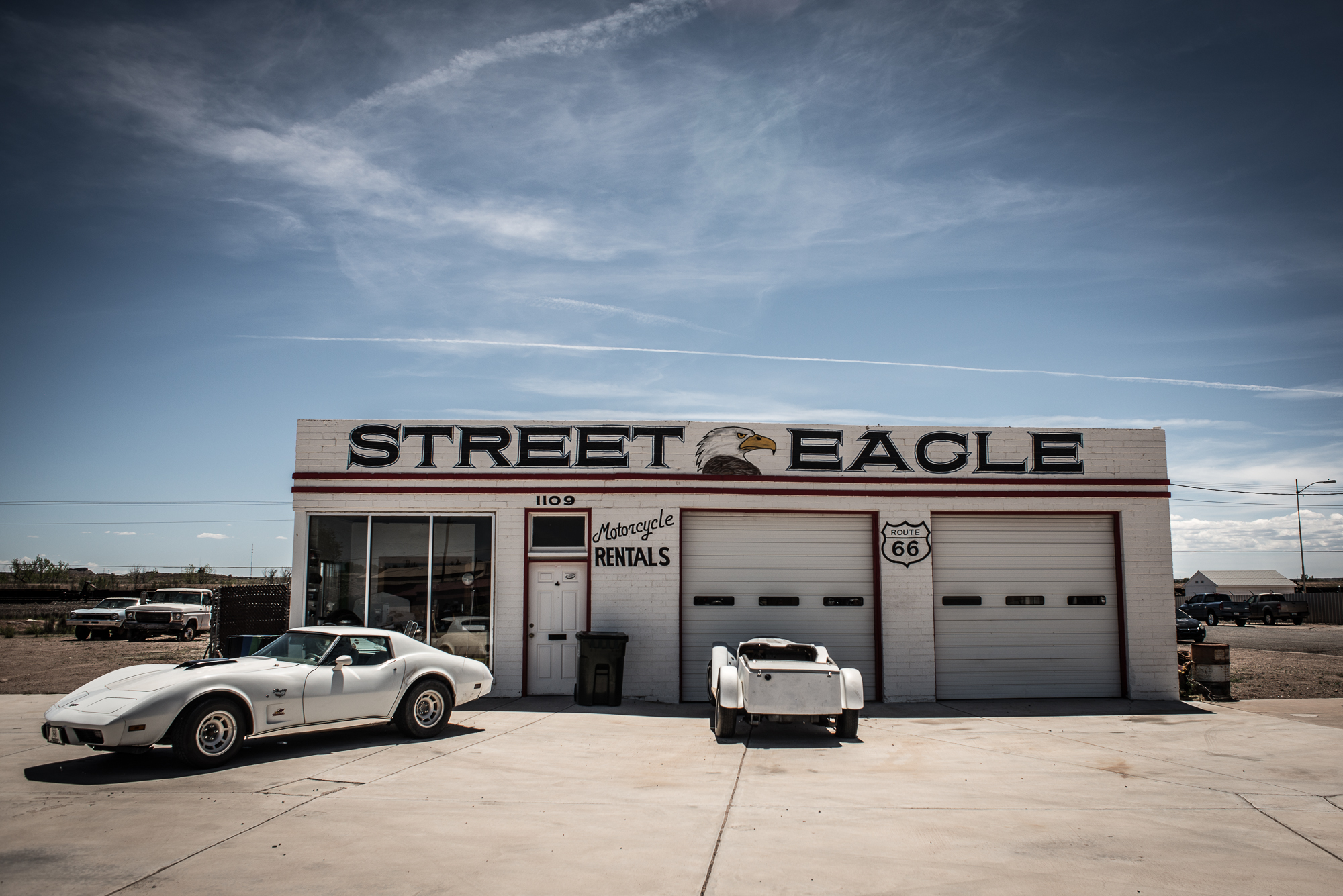 We had probably put about 150 miles on from Flagstaff when Roger turned to me and said “Why’d you want to drive Rt 66 anyway?” In 1910 there were only 500,000 cars in the US. The population then was 92 million. Most of those cars drove around town and they were still a bit of a novelty. By 1920, there were over 10 million cars in the US. They drove on disjointed trails and getting from here to there was not easy. It was then that an Oklahoma real estate developer had the idea of a road that connected Chicago to Los Angeles and Rt 66 was conceived. By the early 1930’s the Great Depression had left many Americans looking for a new future and the Dust Bowl of the 30’s sent many a midwesterner to Rt 66 and California to find it. The Road gave rise to new towns, interstate commerce and connected the country, much like the railroads had years earlier. The Road thrived. But by the mid 1950’s Eisenhower’s Interstate highways system marked the beginning of the end of Rt 66. Today, the road we drive is intact in some places and long gone in others. Many of the towns that grew up on the Road were bypassed when the Interstates were formed and have all but disappeared. So why drive America’s Main Street today? Because we still can. Because for now, we still can.