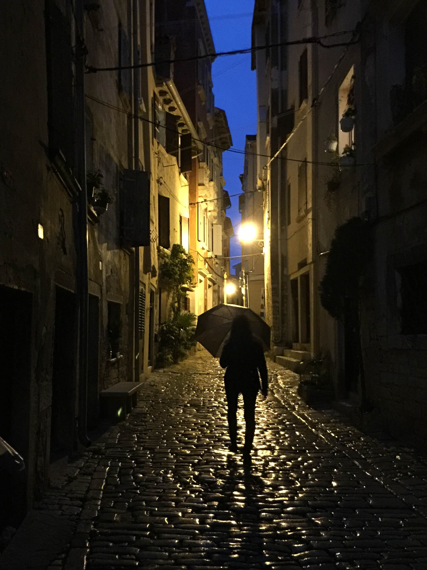 After returning safely to Split from our Splendid Sailing Sojourn it was off to Istria!  Istria is a small peninsula that has been occupied by Italy, Austria, Hungary, Yugoslavia and now Croatia and NO WONDER!  There’s gold in them thar hills…yes the black and especially the white variety and ohhhh are they yummy!  We made our way to Rovinj in the rain, yes a long wet driving day. But no matter, the old city looked great with the glistening limestone alleys.IMG_3650