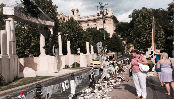 Such small but meaningful tributes dot the city’s landscape. Here, a statue of Miklos Radnoti, a Hungarian jewish poet who, when sent on a death march toward a concentration camp with no way to write, is alleged to have penned his final poem in his own blood.