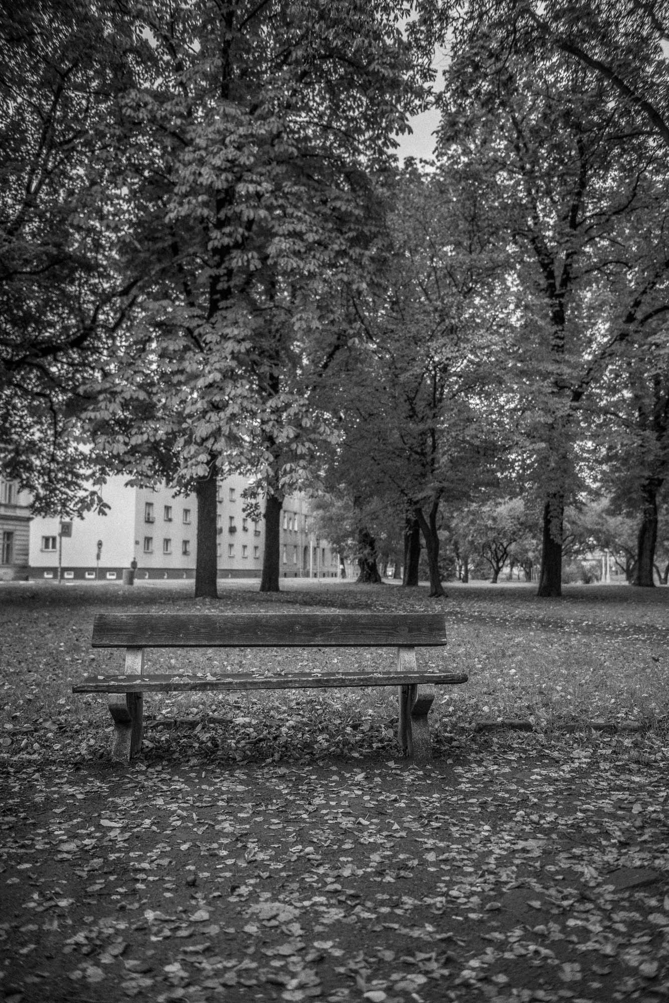 In this park in the center of Terezin, a bench sits empty as jews were not allowed even to walk into the park.MSC_8615