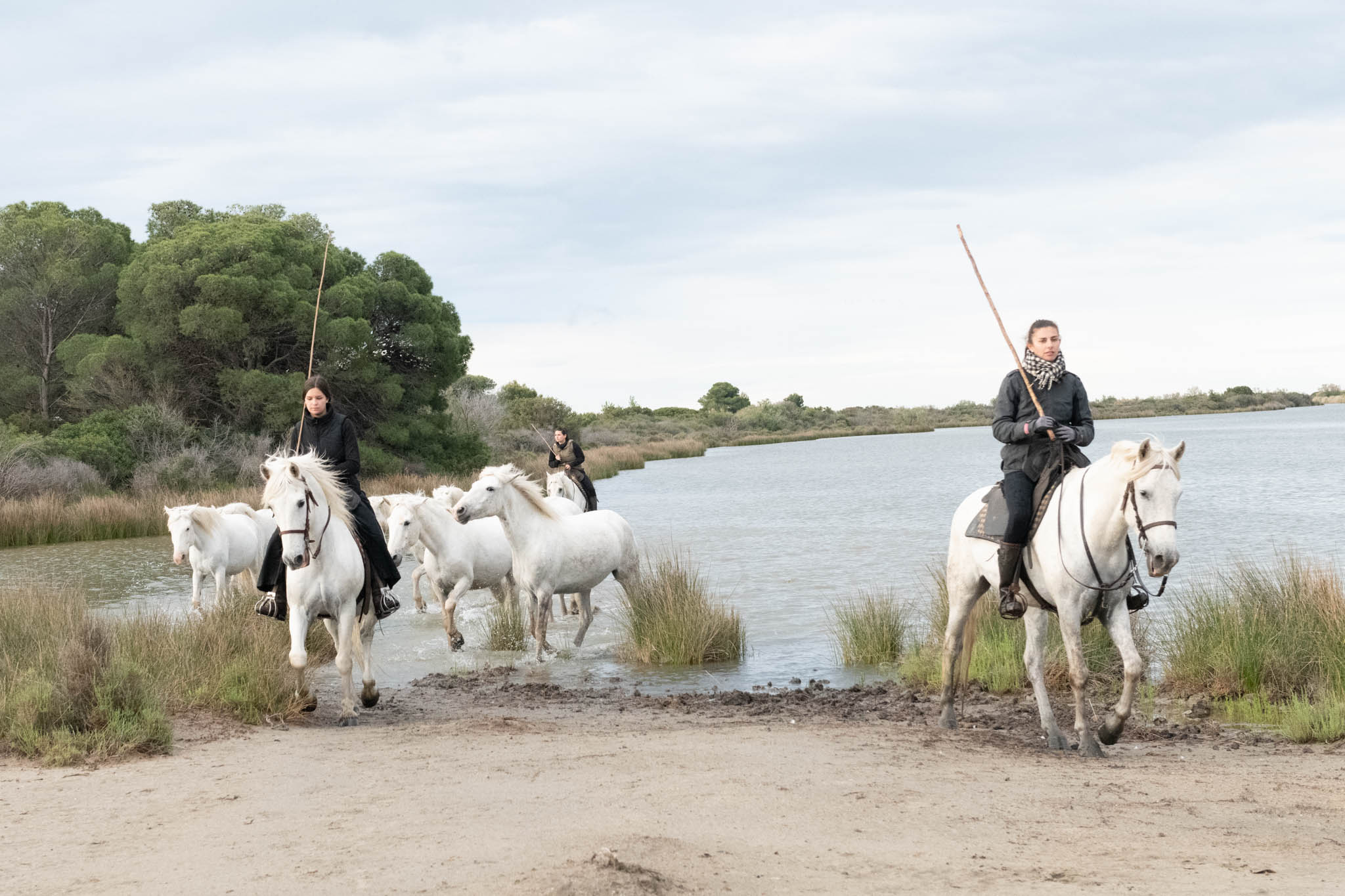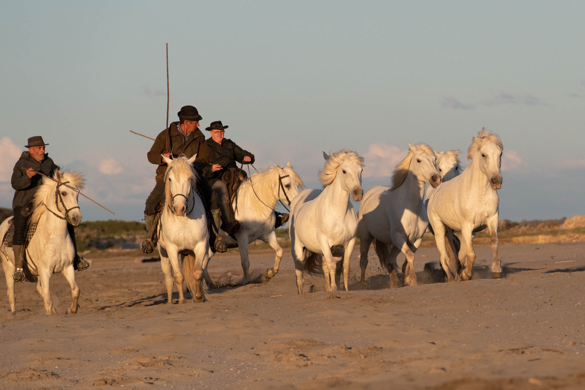 Enter Les Gardians, akin to the cowboys of the old west, the gardians ride Camargue horses and primarily are employed to drive cattle, including the quite famous Camargue bulls. But they can also be employed to roundup and ‘herd’ Camargue horses that roam the land.