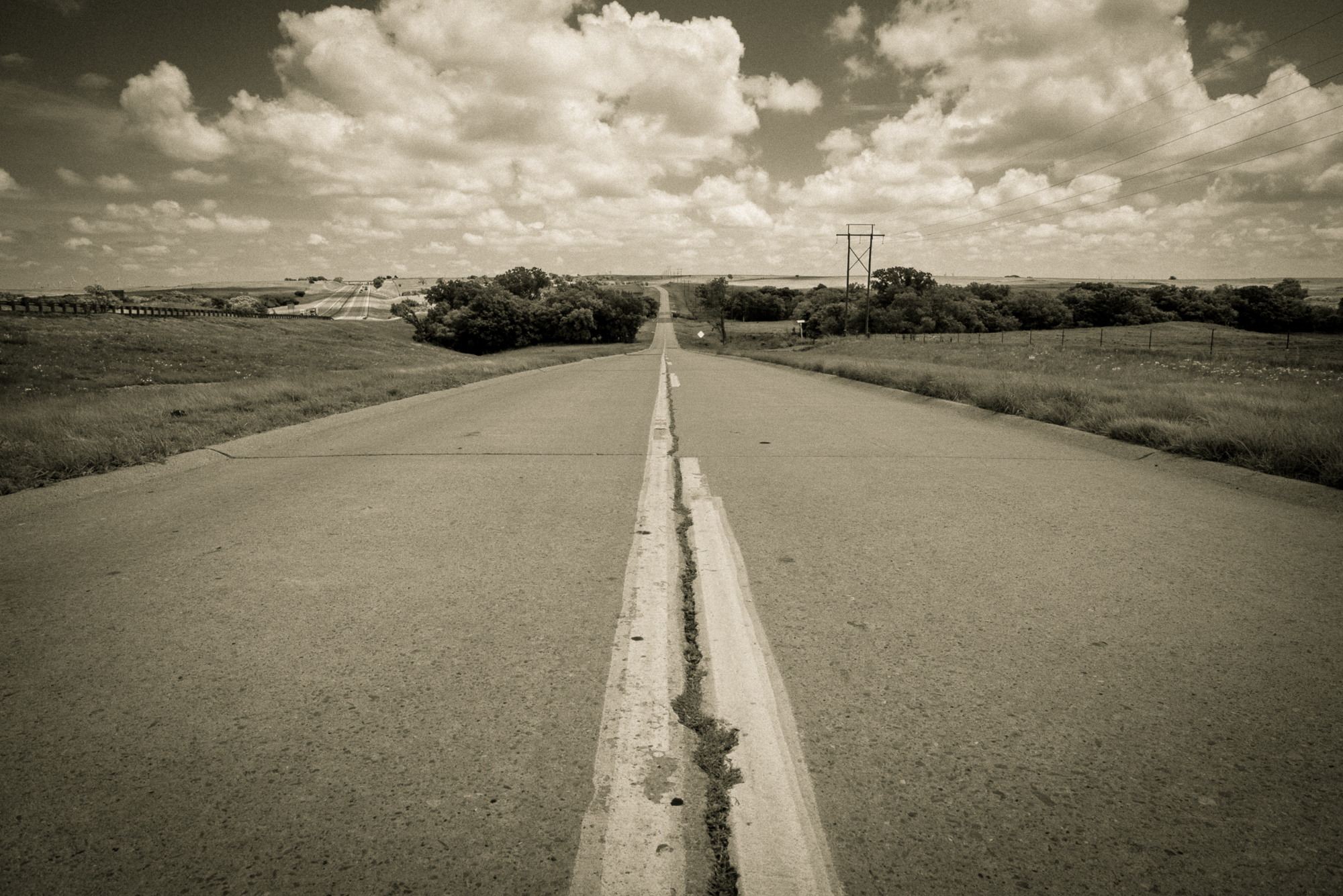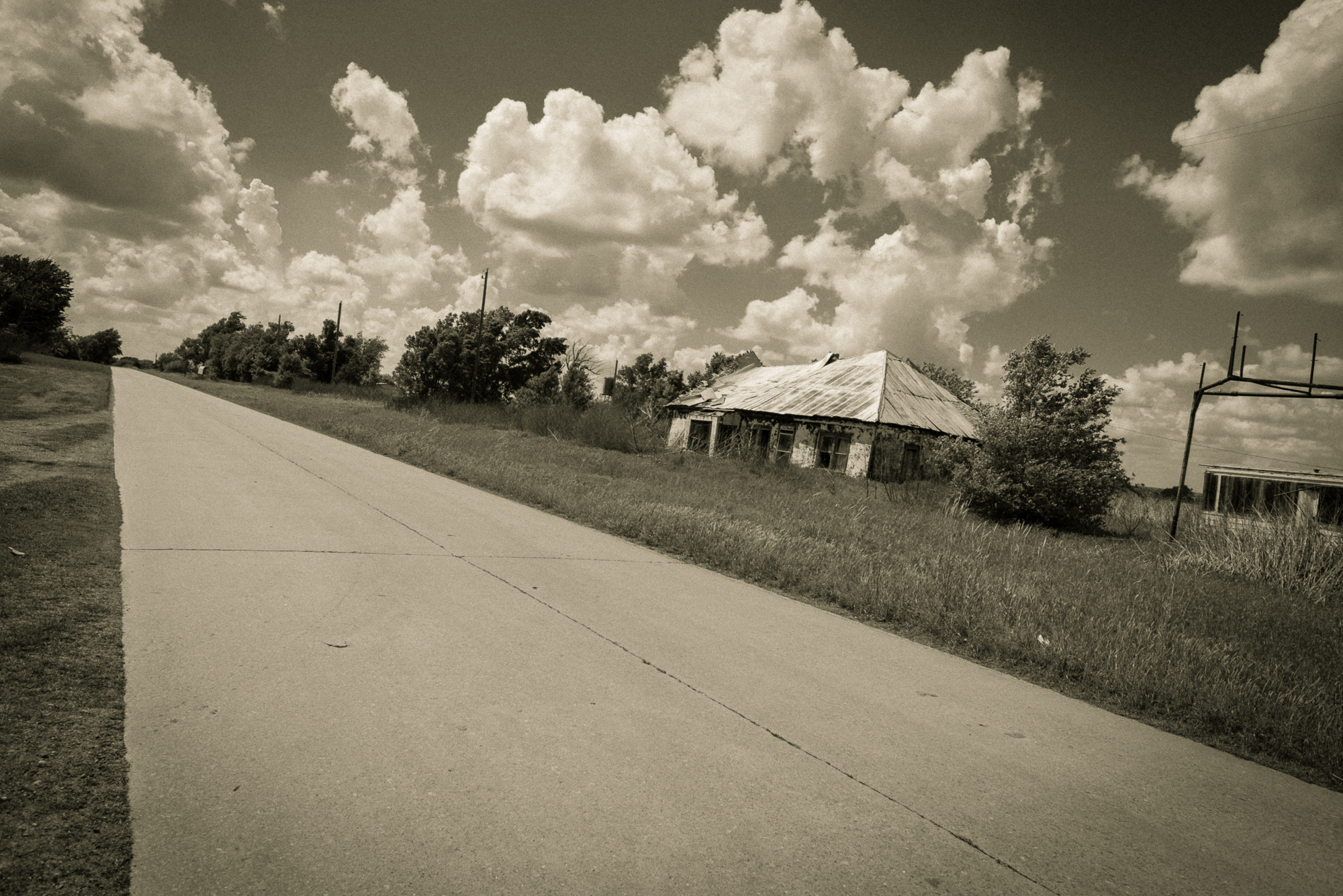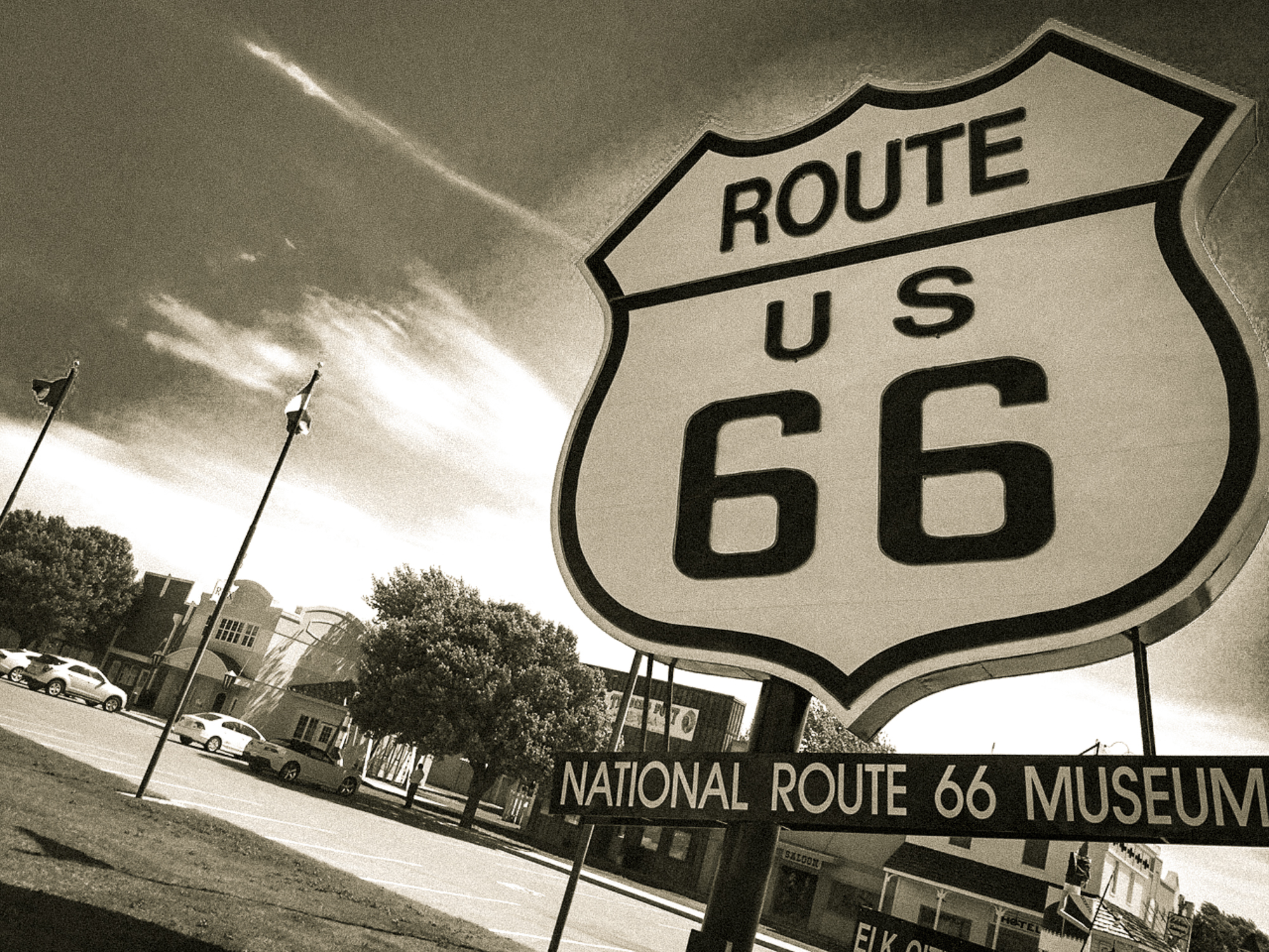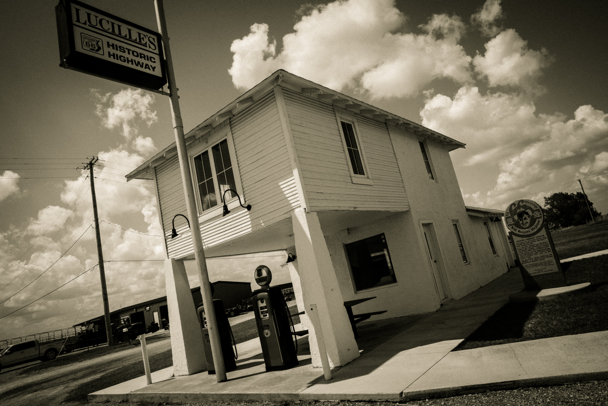 This stretch of Road that we’ve just come through, from Elk City, OK to Oklahoma City, is the most authentic and beautiful stretch of Rt 66 we’ve seen. Most of it is the original concrete and you really do get the feel of what it might have been like when Rt 66 was the only highway in America. I posted today’s photos in an older monochrome tone to help visualize a time now gone.